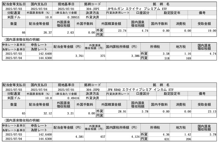 7・8月分のJEPI・JEPQの購入と配当金を、まとめて発表します。
