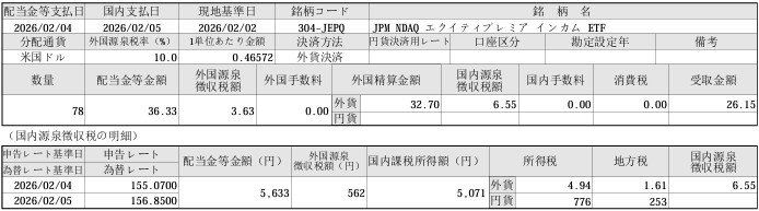 配当が出たのはJEPQだけです。 JEPIは売却しました。